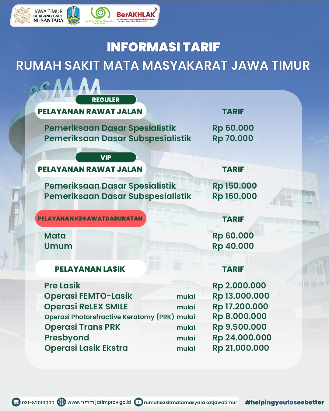 Sebagai implementasi peningkatan mutu dan pelayanan RS Mata Masyarakat Jawa Timur, kami sampaikan kuota pasien masing-masing klinik rawat jalan reguler berlaku