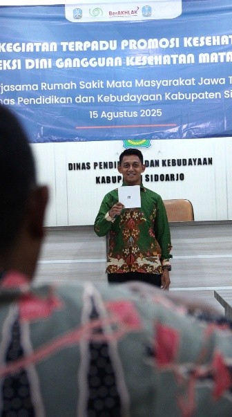 Sidoarjo, 15 Agustus 2025 – RS Mata Masyarakat (RSMM) Jawa Timur menyelenggarakan kegiatan Promosi Kesehatan dan Deteksi Dini Gangguan Mata untuk anak sekolah, yang berlangsung di Aula Dinas Pendidikan dan Kebudayaan Kabupaten Sidoarjo. Acara ini diikuti oleh 87 guru SD dan SMP pengelola UKS, dari total 100 undangan yang tersebar di wilayah Sidoarjo.